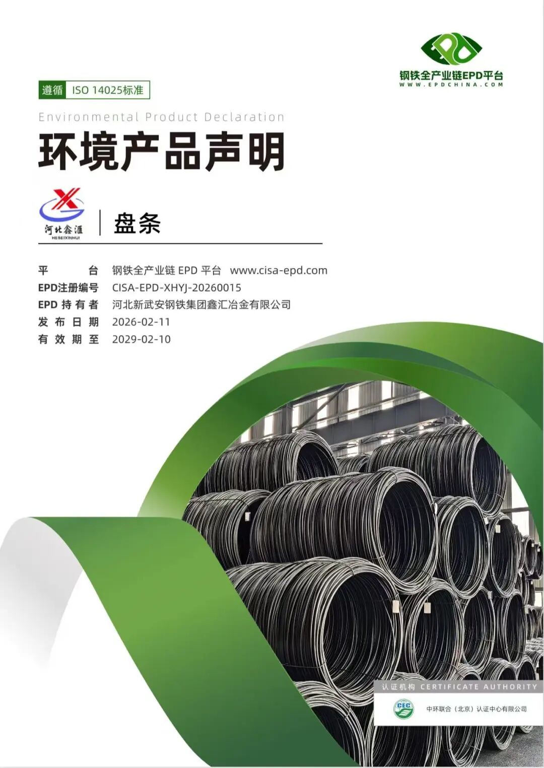 近日我公司生產(chǎn)的低碳熱軋盤條在鋼鐵全產(chǎn)業(yè)鏈(EPD)平臺(tái)發(fā)布了環(huán)境產(chǎn)品聲明,這一認(rèn)證的成功獲取,是鑫匯綠色轉(zhuǎn)型的關(guān)鍵跨越,標(biāo)志著企業(yè)高質(zhì)量發(fā)展再上新臺(tái)階。